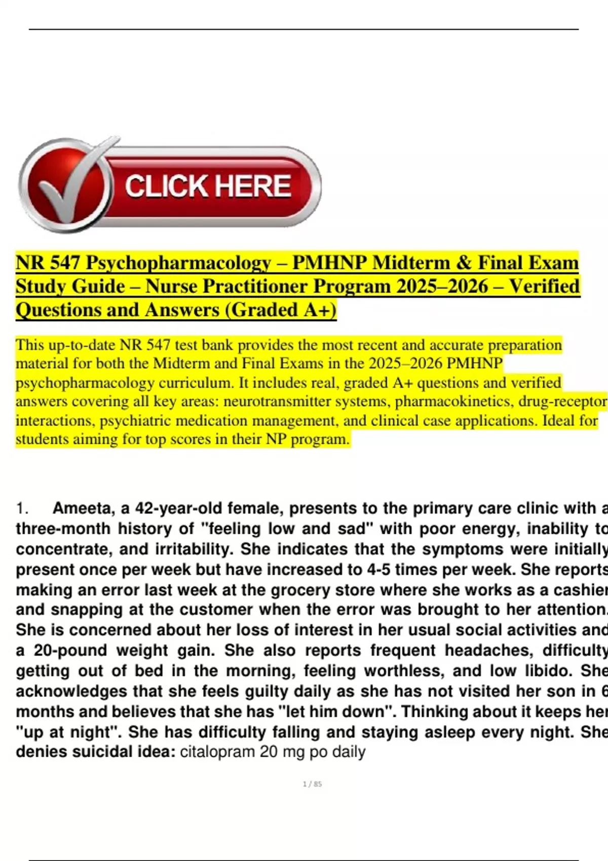 psychopharmacology curriculum. It includes real, graded A+ questions and verified