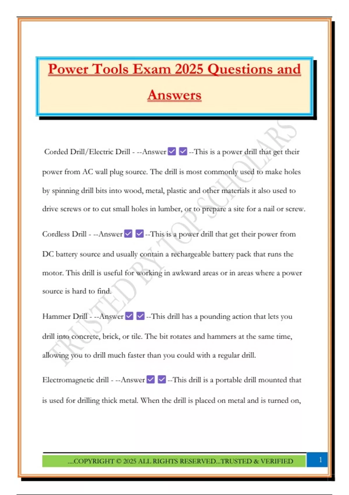 Power Tools Exam 2025 Questions and