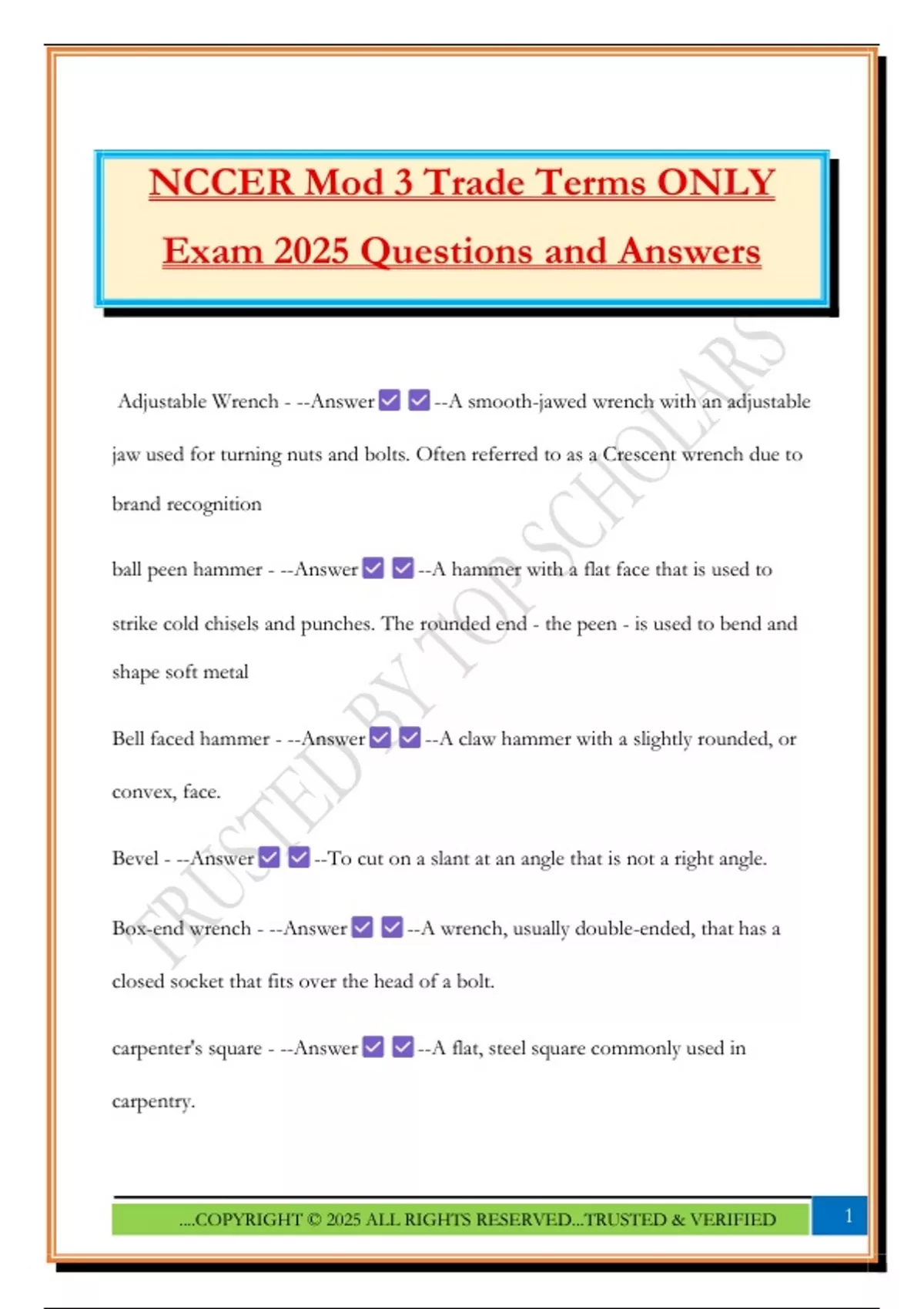 NCCER Mod 3 Trade Terms ONLY