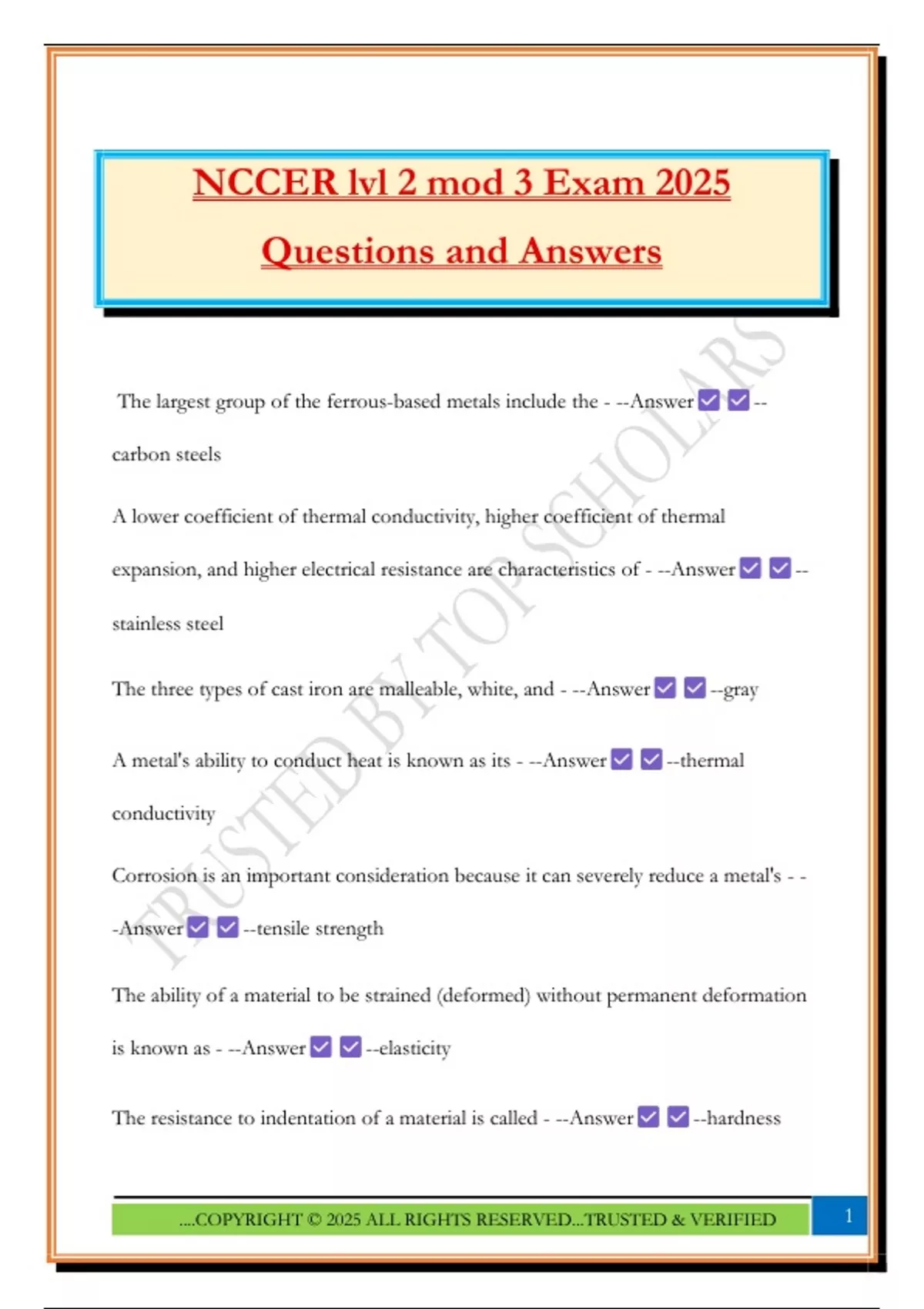 NCCER lvl 2 mod 3 Exam 2025