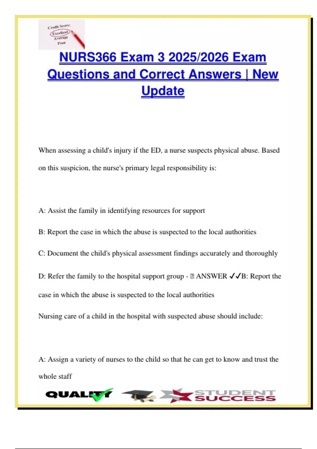 D: Refer the family to the hospital support group - 🧠 ANSWER ✔✔B: Report the