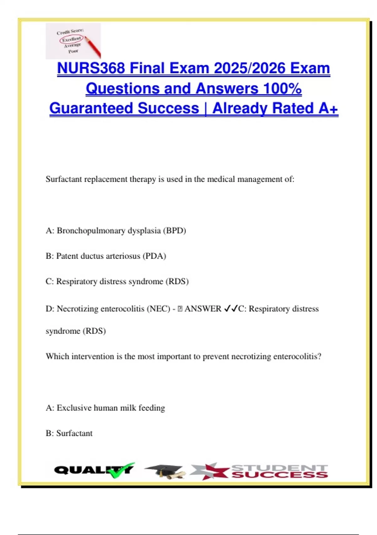 D: Necrotizing enterocolitis (NEC) - 🧠 ANSWER ✔✔C: Respiratory distress