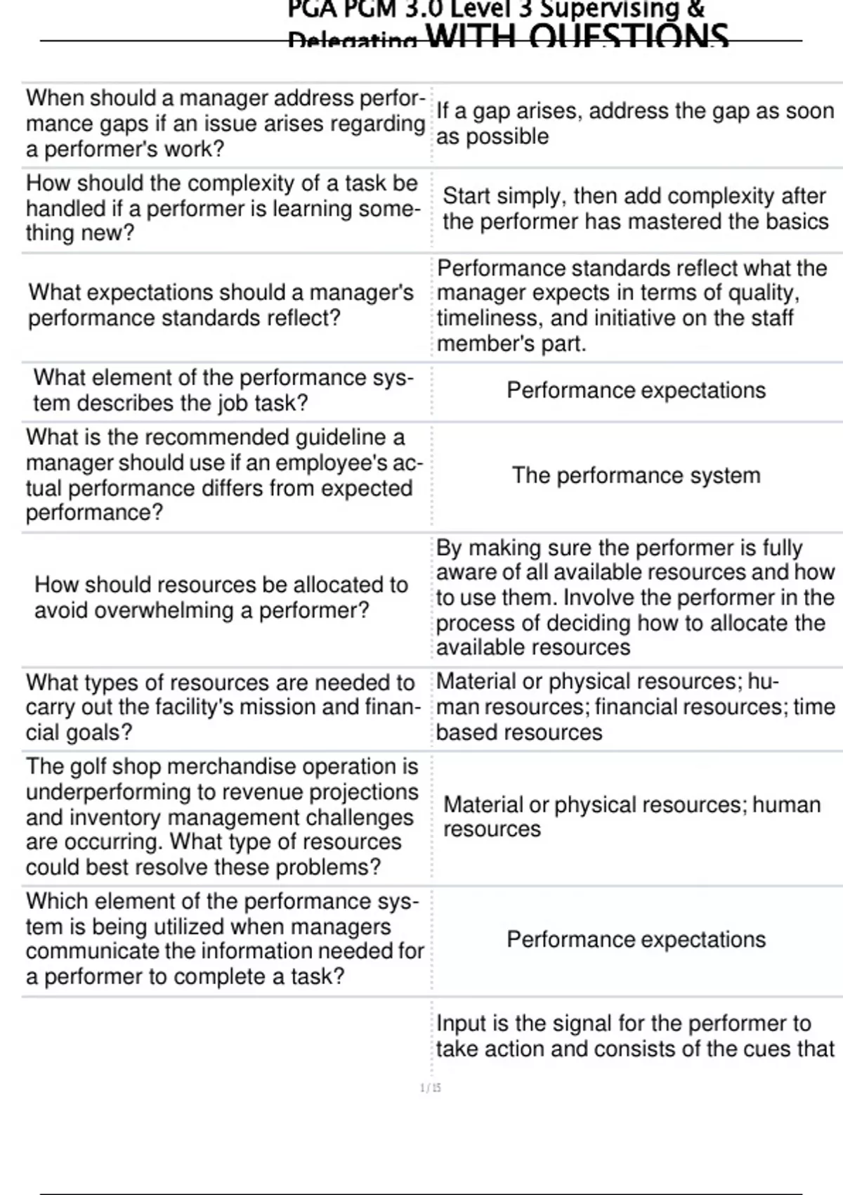 PGA PGM 3.0 Level 3 Supervising & Delegating WITH QUESTIONS PGA PGM 3.0 Level 3 Supervising & Delegating WITH QUESTIONS