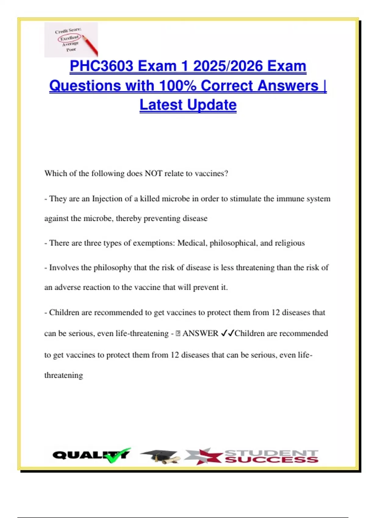 Questions with 100% Correct Answers |