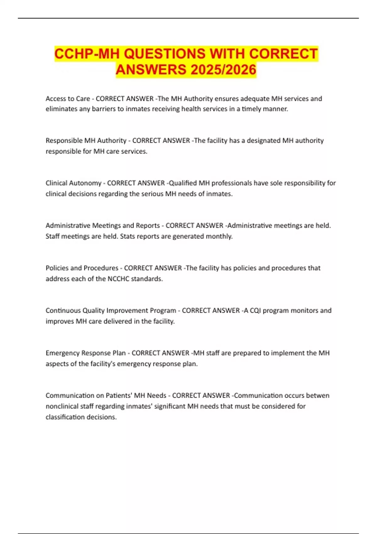 Responsible MH Authority - CORRECT ANSWER -The facility has a designated MH authority