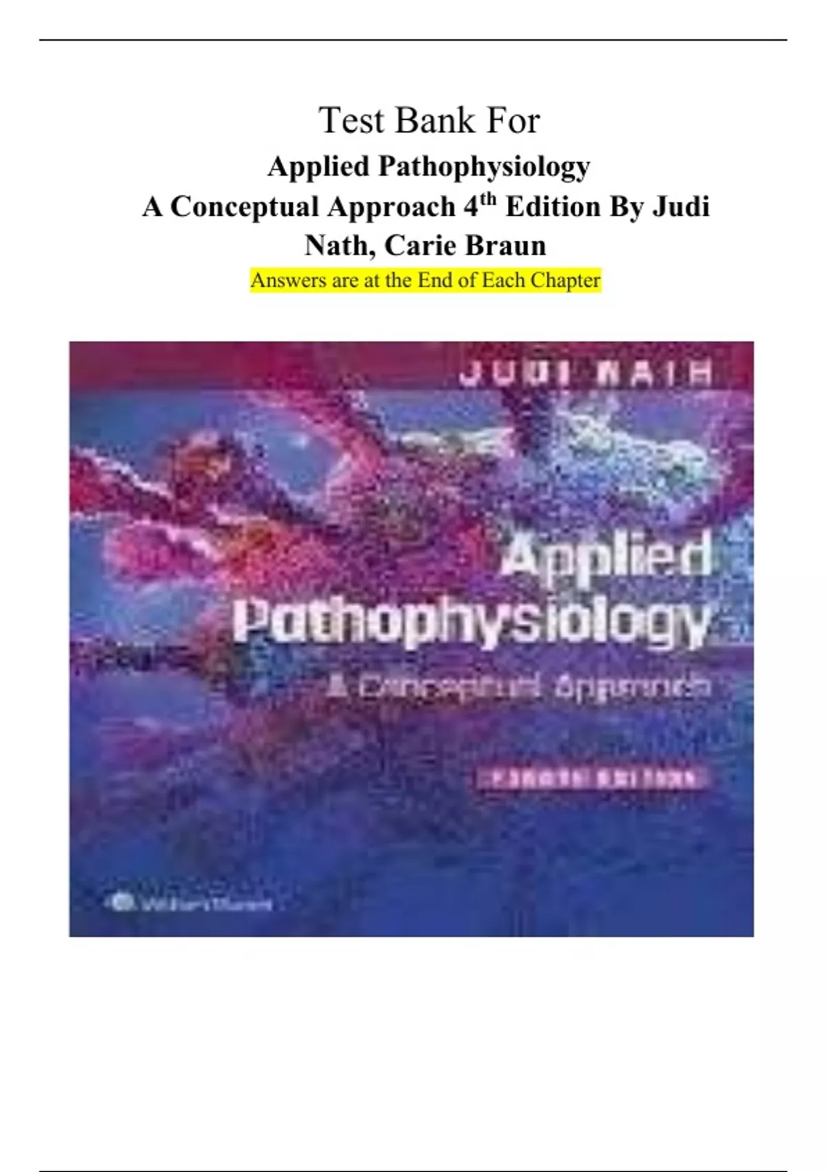 Test Bank For Applied Pathophysiology A Conceptual Approach 4th Edition By Judi Nath, Carie Braun Chapter 1-17