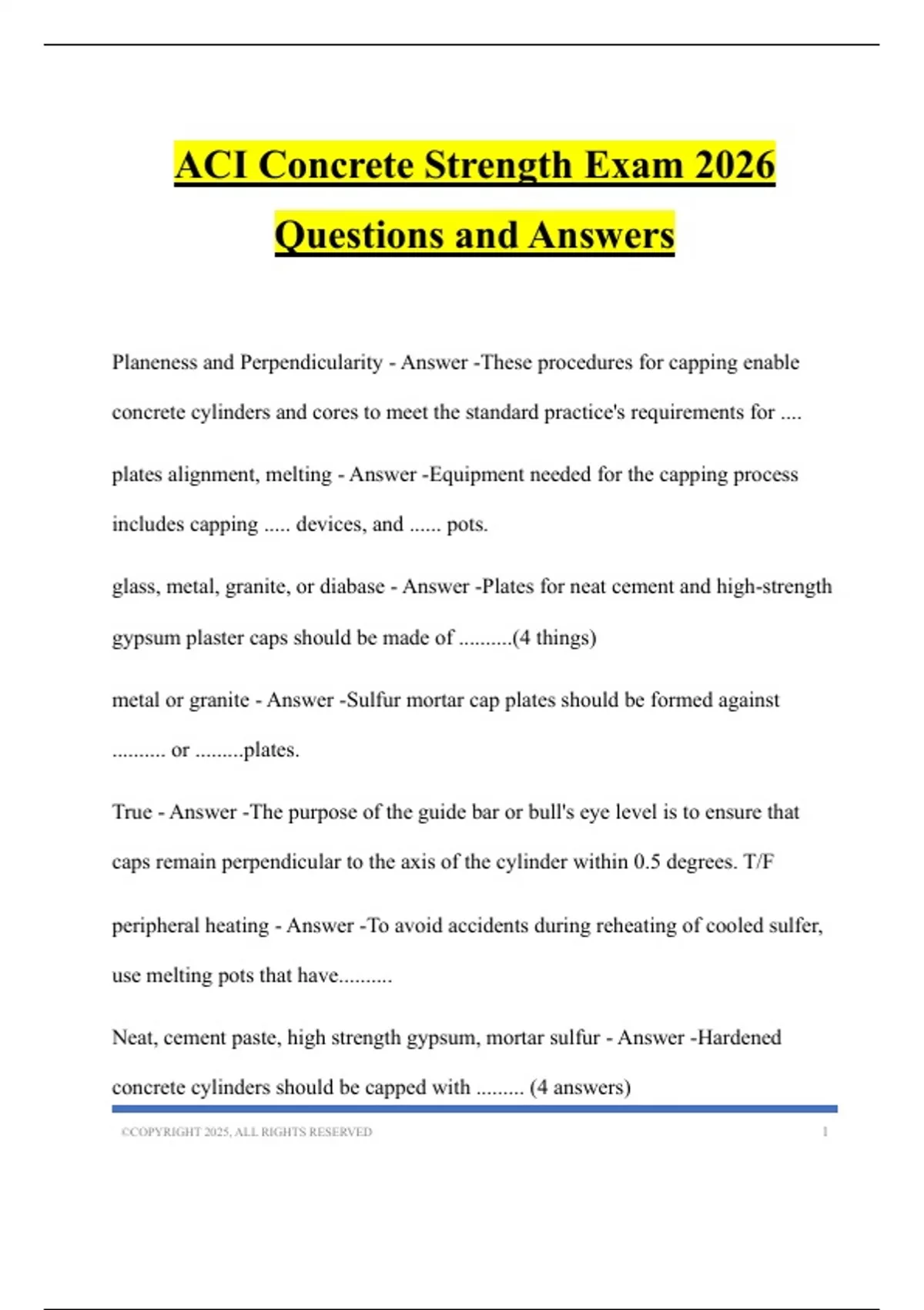ACI Concrete Strength Exam 2026 Questions and Answers