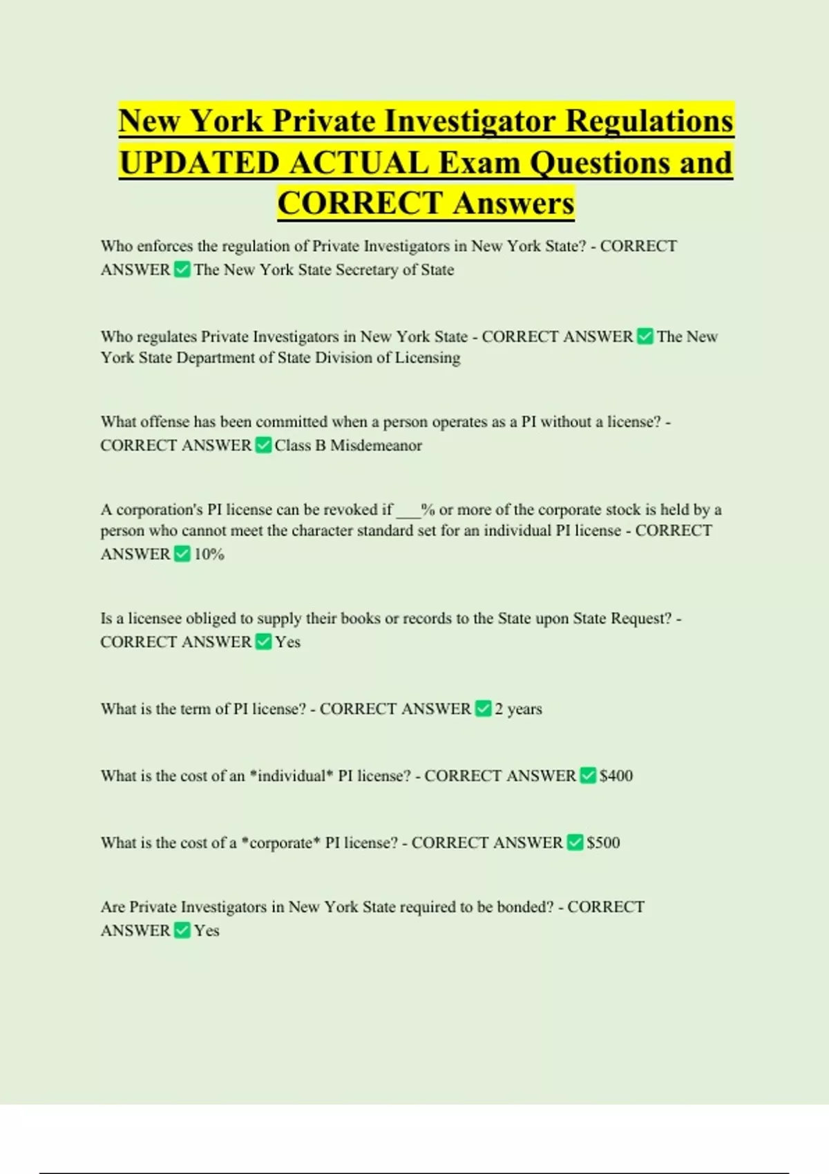 Are Private Investigators in New York State required to be bonded? - CORRECT