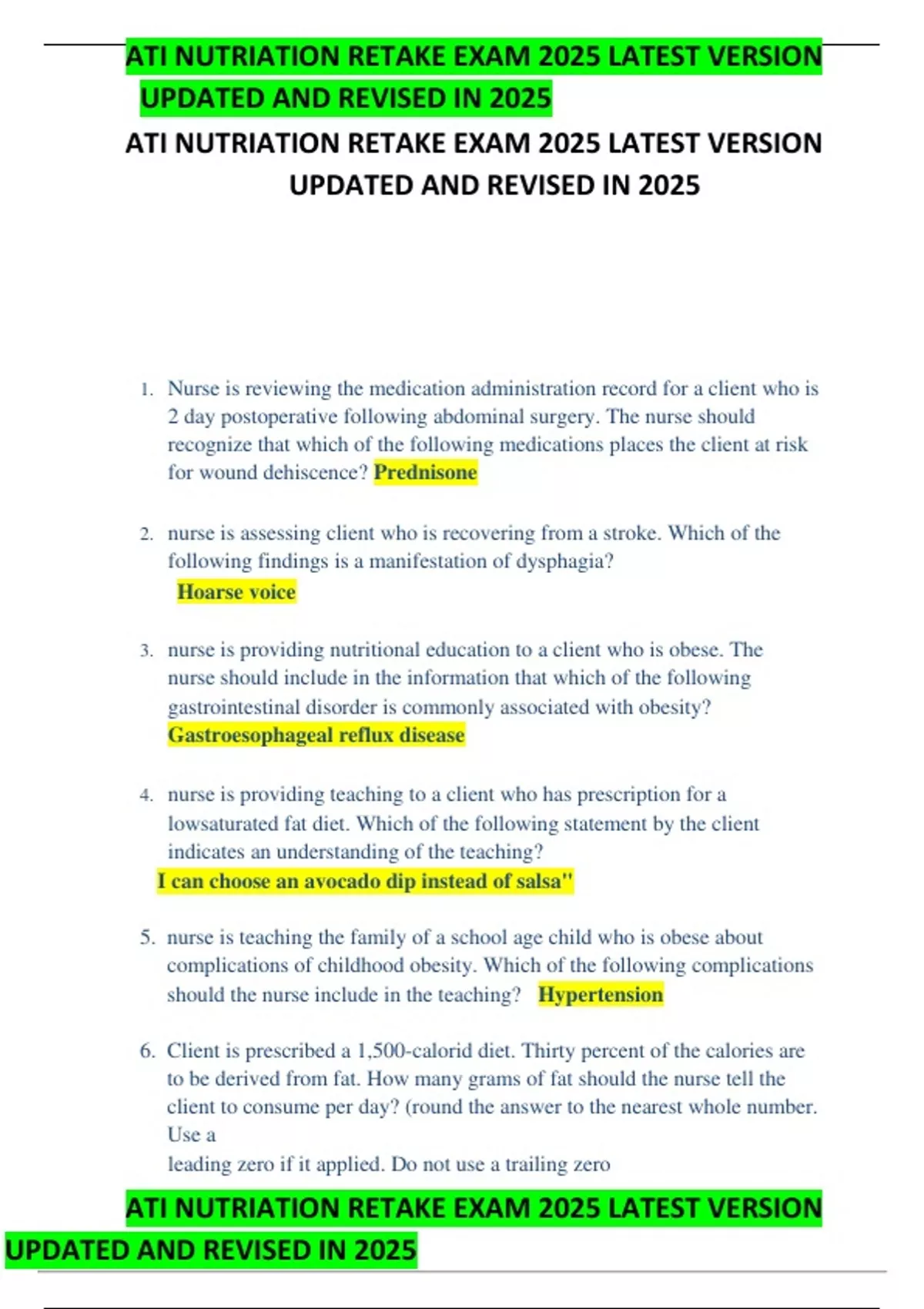 , ATI NUTRIATION RETAKE EXAM 2025 LATEST VERSION