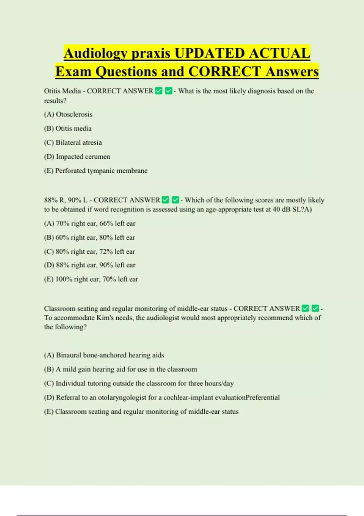 Classroom seating and regular monitoring of middle-ear status - CORRECT ANSWER -