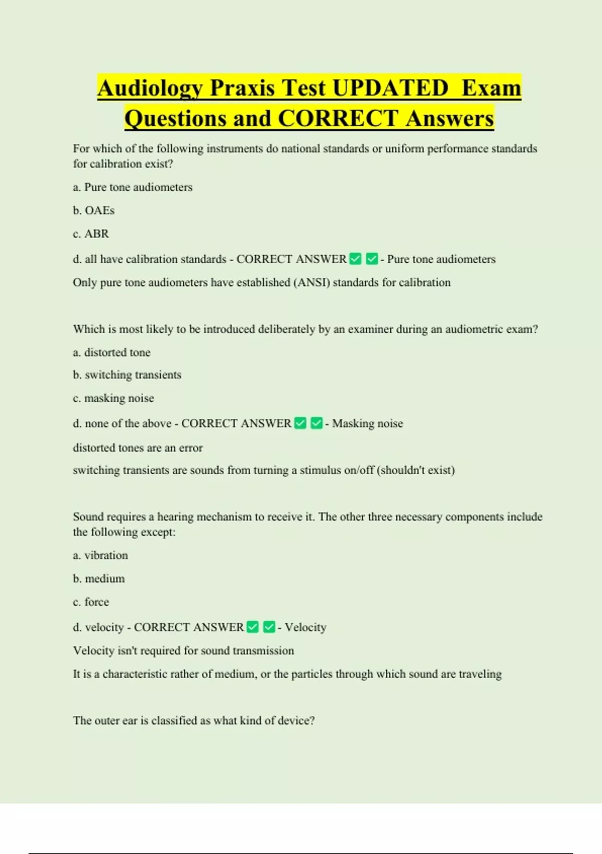 d. all have calibration standards - CORRECT ANSWER - Pure tone audiometers