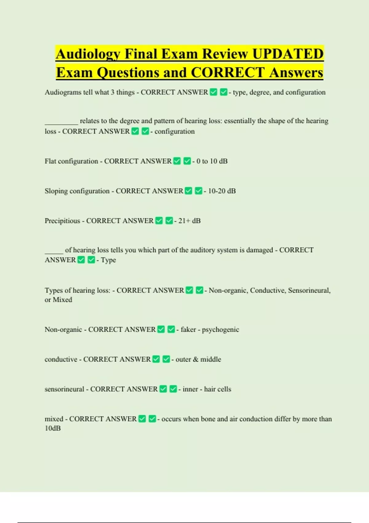 Audiograms tell what 3 things - CORRECT ANSWER - type, degree, and configuration