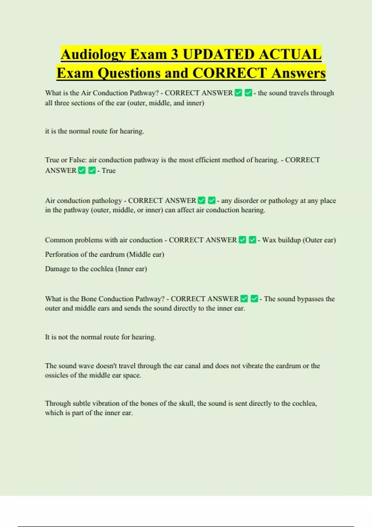 Common problems with air conduction - CORRECT ANSWER - Wax buildup (Outer ear)