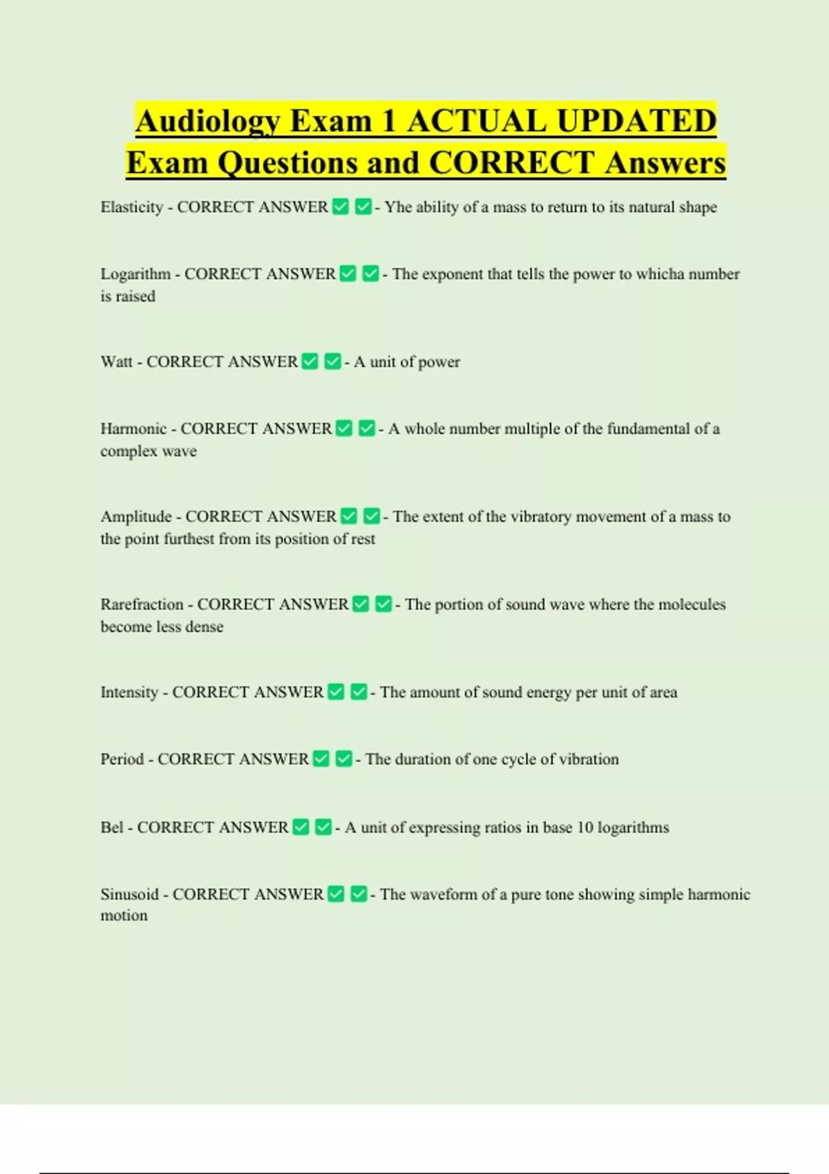 Exam Questions and CORRECT Answers