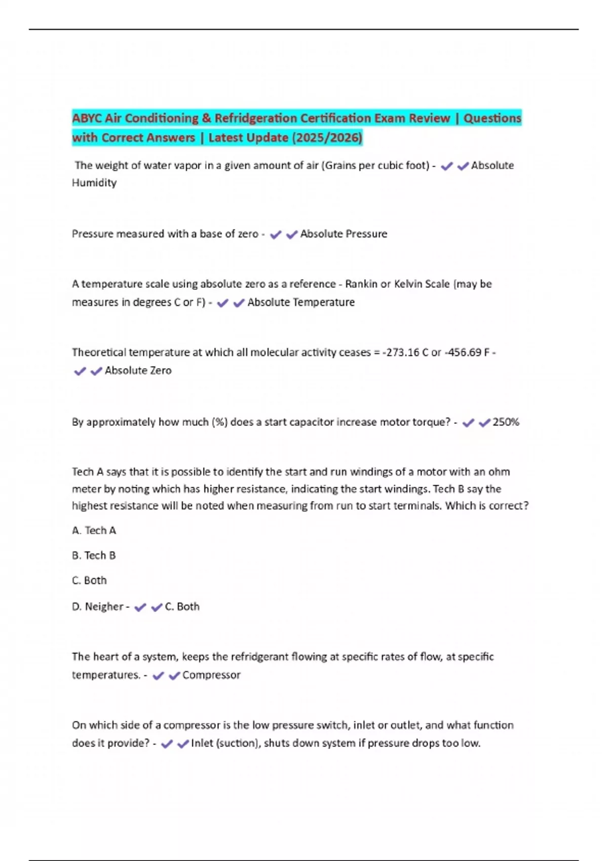 ABYC Air Conditioning & Refridgeration Certification Exam Review | Questions with Correct Answers | Latest Update (2025/2026)