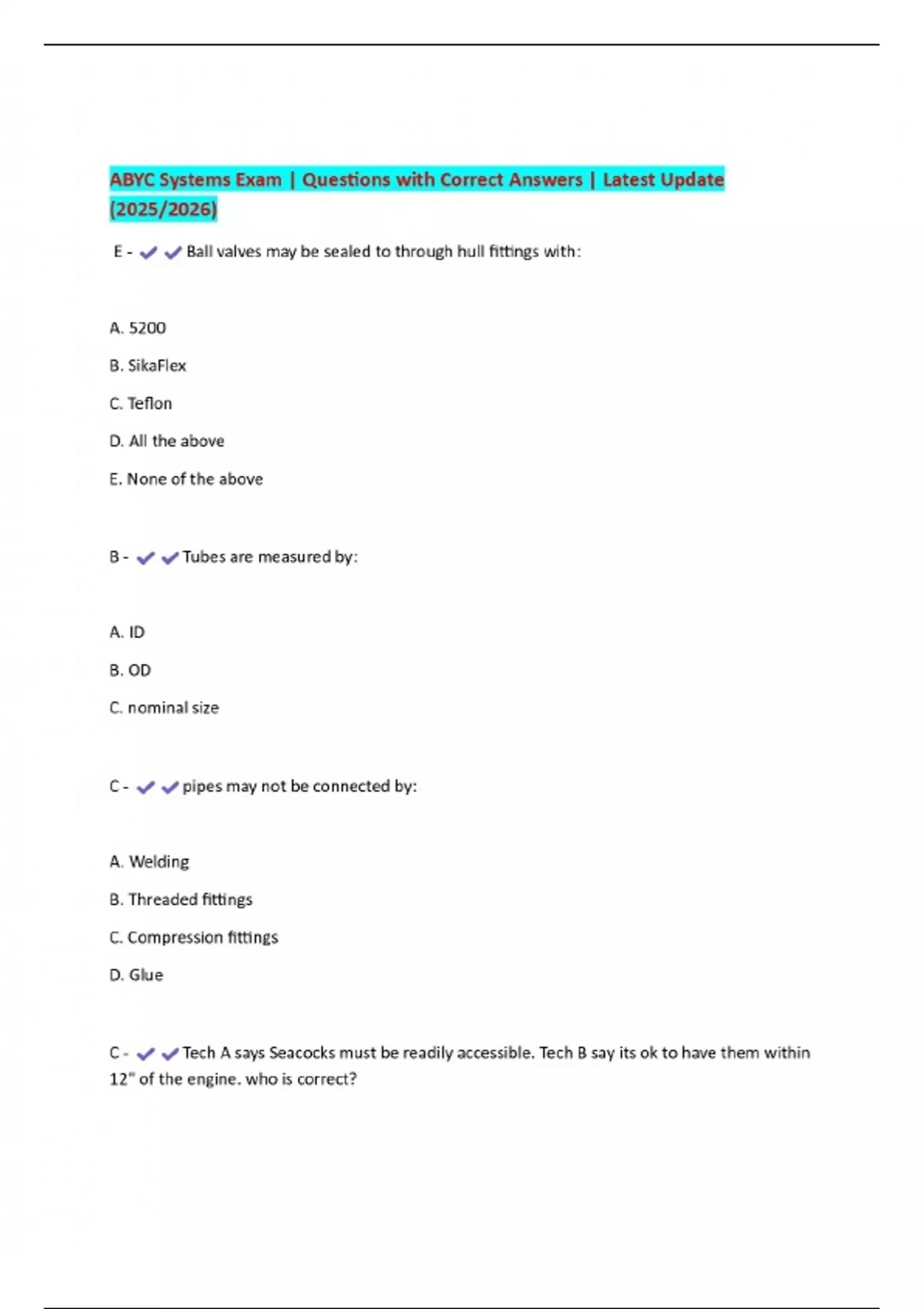 ABYC Systems Exam | Questions with Correct Answers | Latest Update (2025/2026)