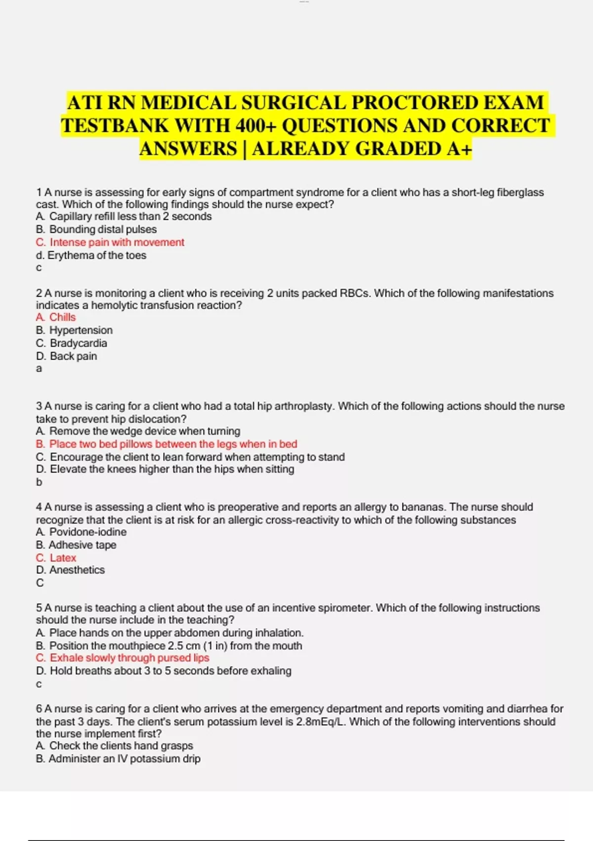 ATI RN Medical-Surgical Proctored Exam Test Bank (Graded A+) (2026)