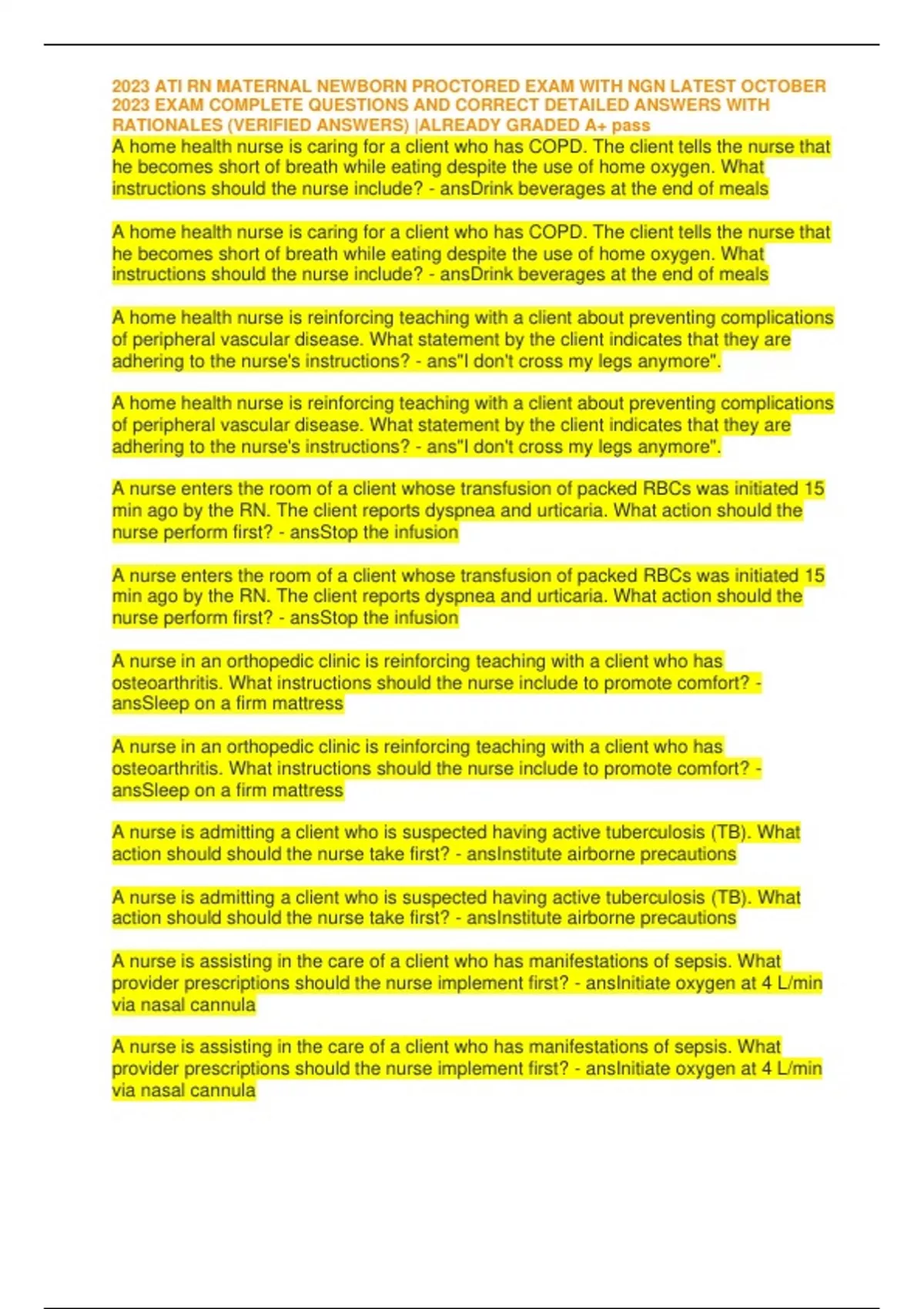 , 2023 ATI RN MATERNAL NEWBORN PROCTORED EXAM WITH NGN LATEST OCTOBER