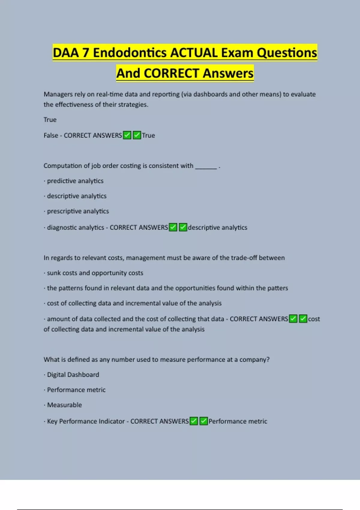 And CORRECT Answers