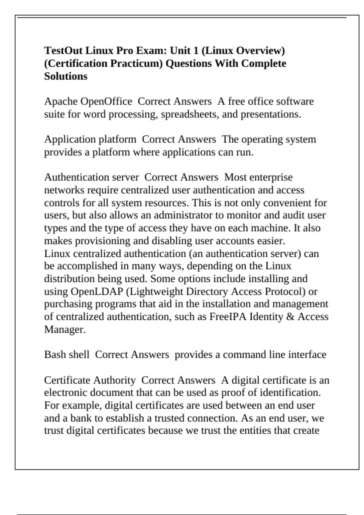 TestOut Linux Pro Exam: Unit 1 (Linux Overview) (Certification Practicum) Questions With Complete Solutions