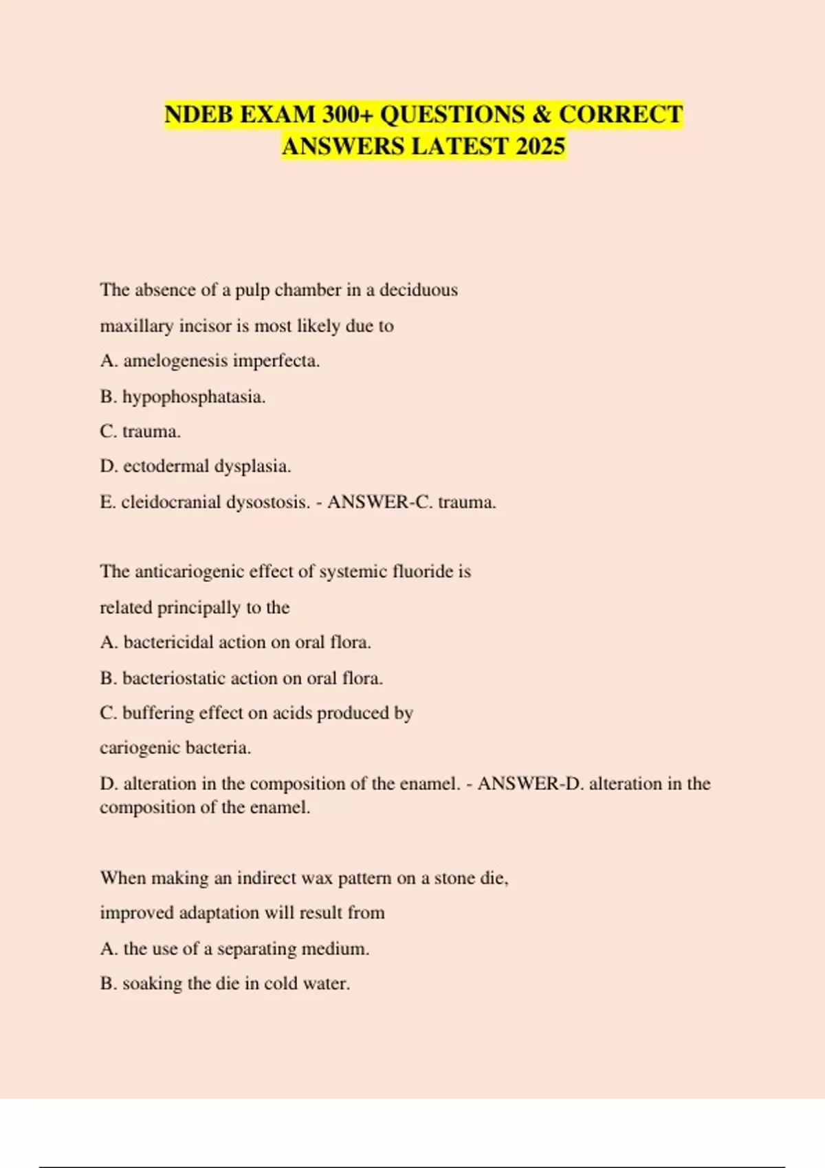 NDEB EXAM 300+ QUESTIONS & CORRECT