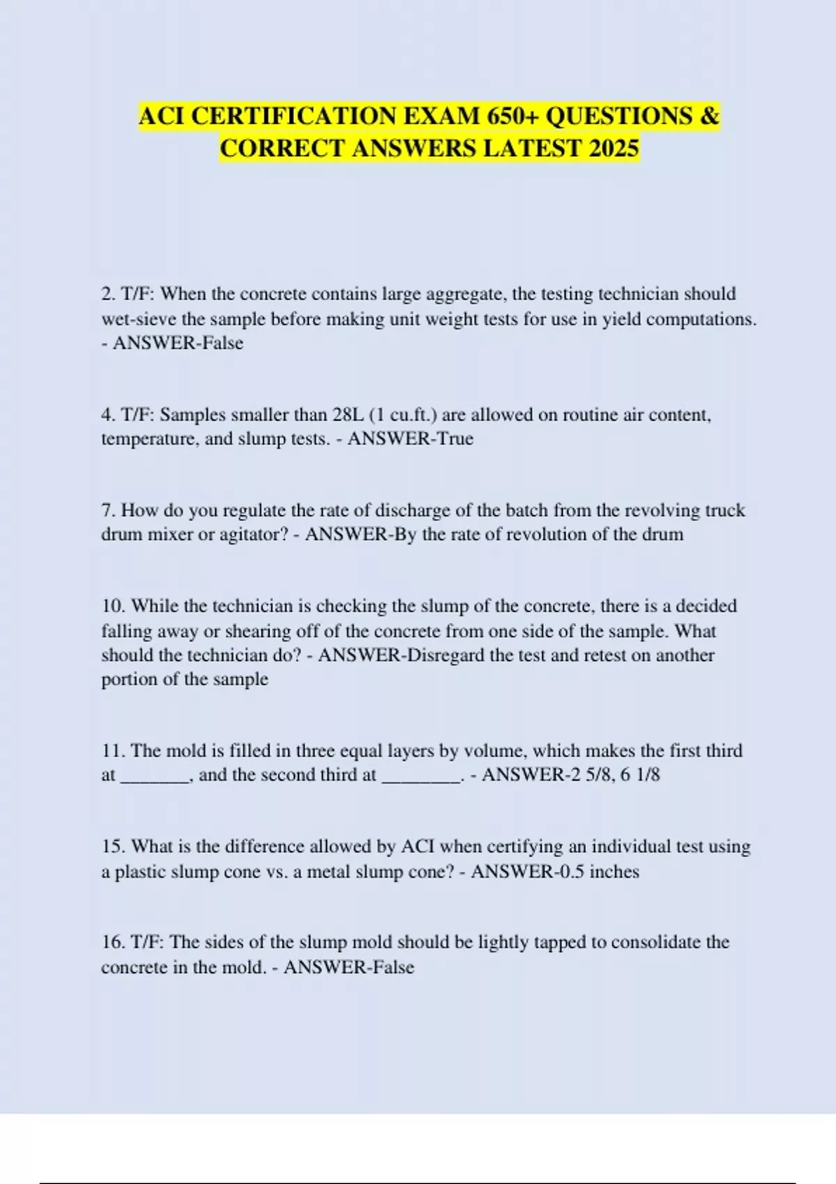 33. T/F: Test method ASTM C231 is intended for use with all concretes and