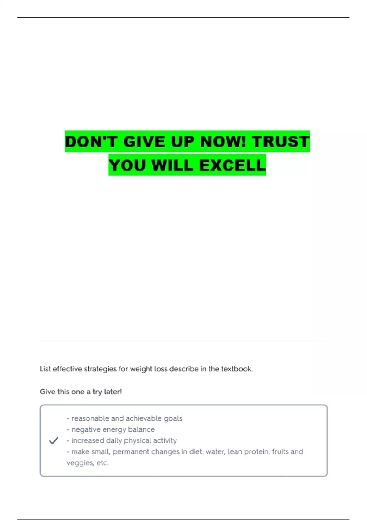 List effective strategies for weight loss describe in the textbook.
