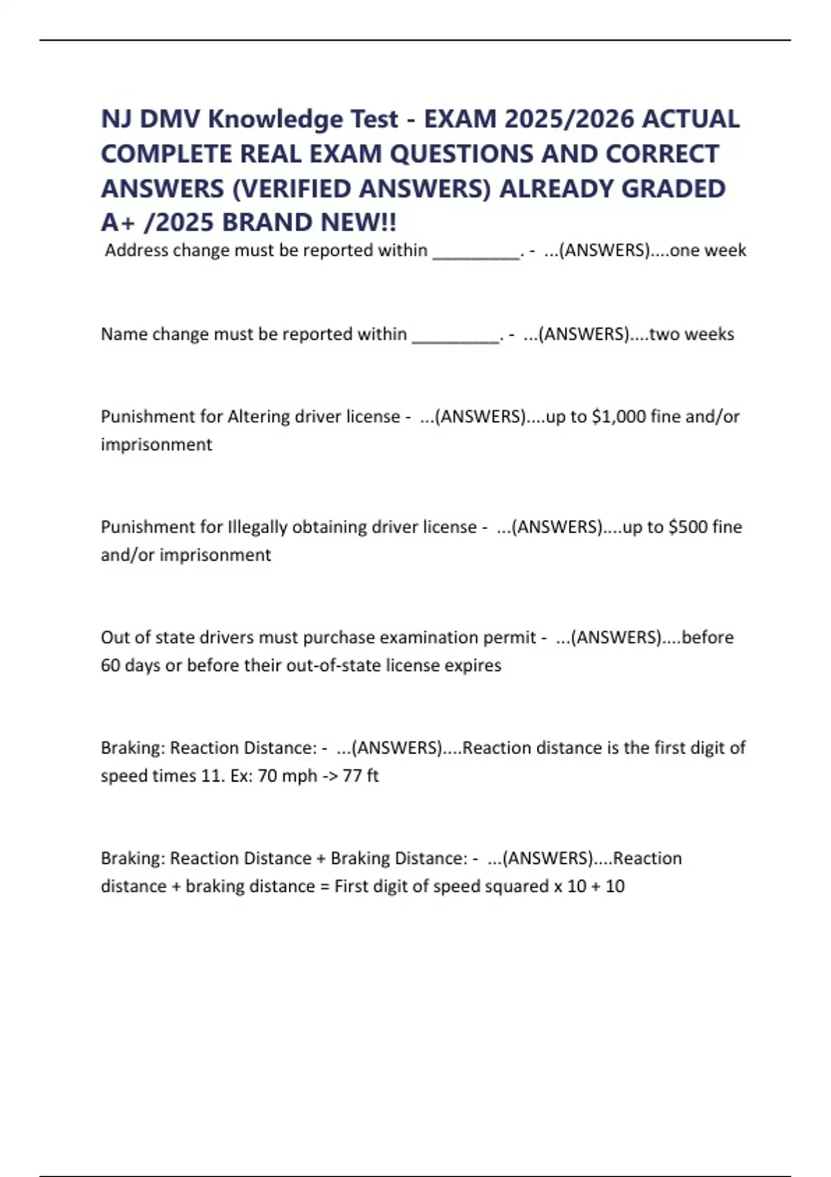 NJ DMV Knowledge Test - EXAM 2025/2026 ACTUAL