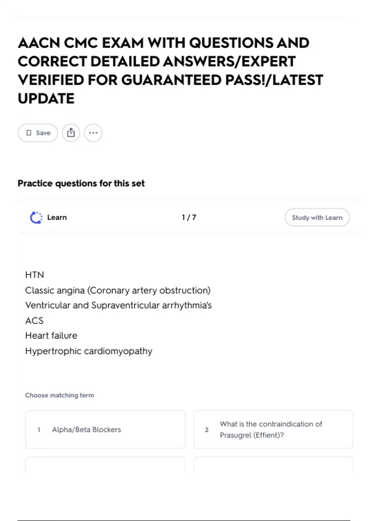AACN CMC EXAM WITH QUESTIONS AND CORRECT DETAILED ANSWERS/EXPERT VERIFIED FOR GUARANTEED PASS!/LATEST UPDATE