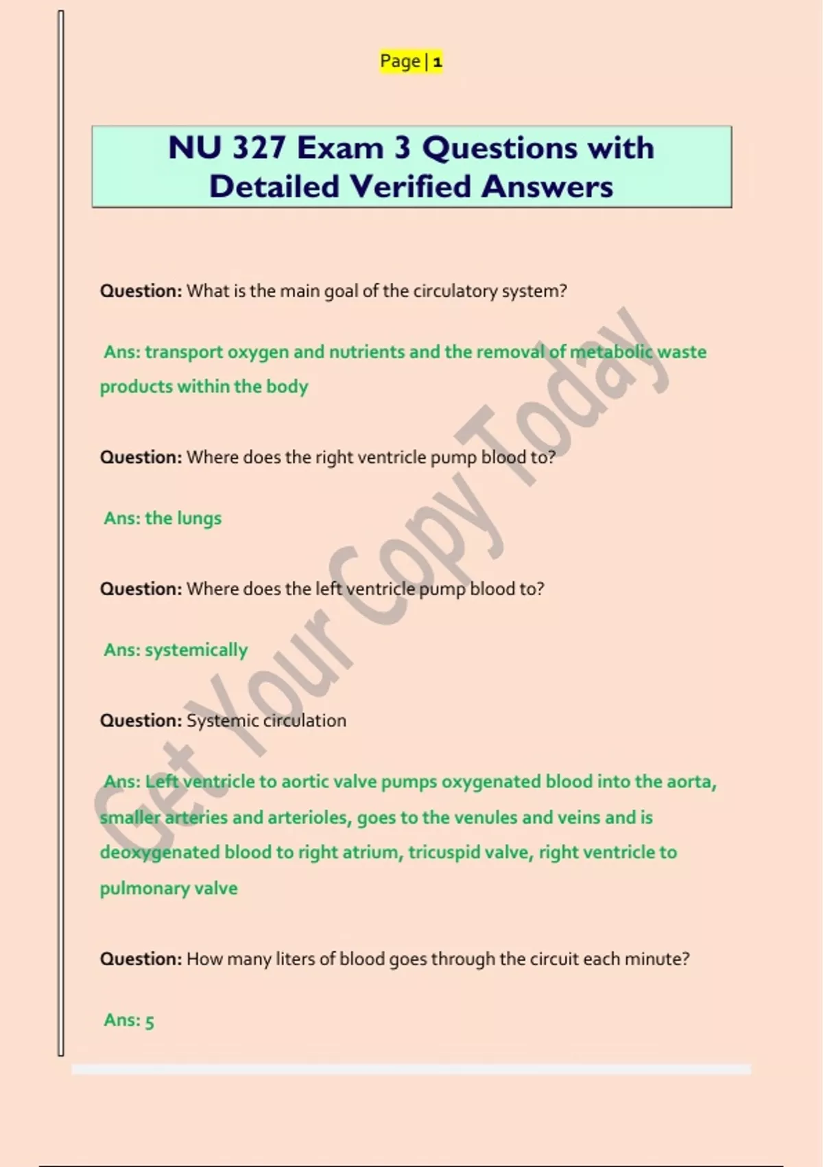 Question: Systemic circulation