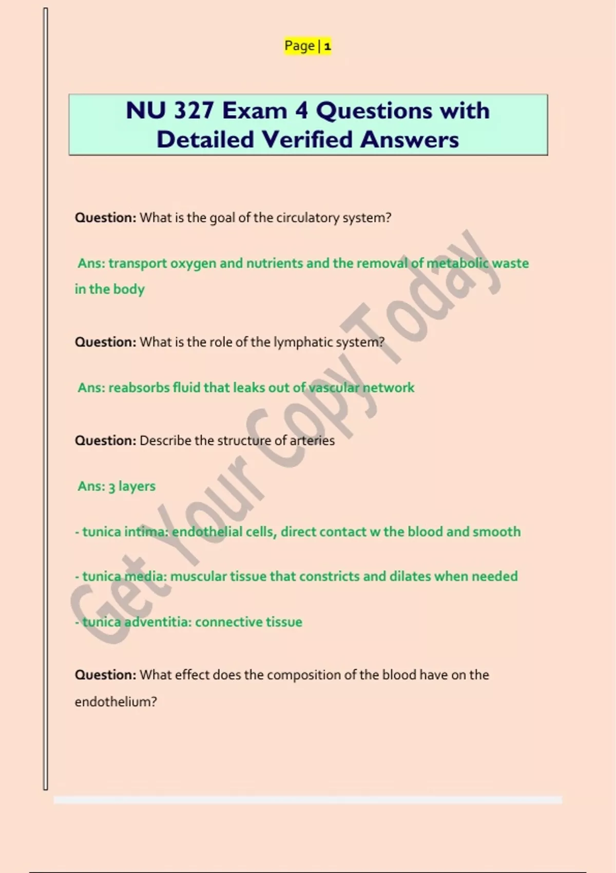 NU 327 Exam 4 Questions with Detailed Verified Answers
