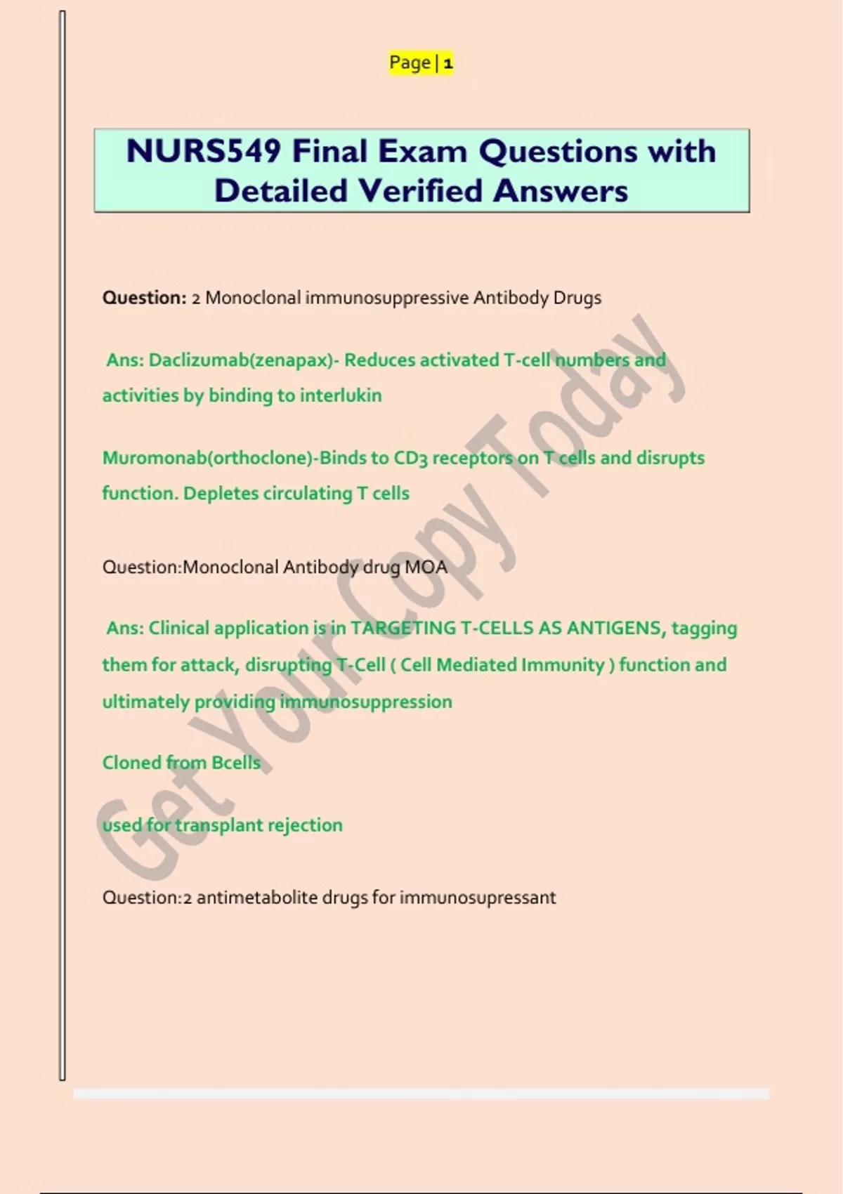 NURS549 Final Exam Questions with Detailed Verified Answers