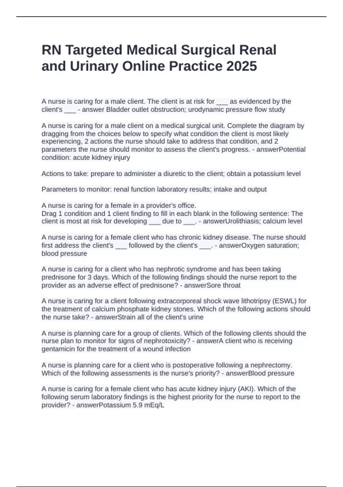 A nurse is caring for a female client who has acute kidney injury (AKI). Which of the