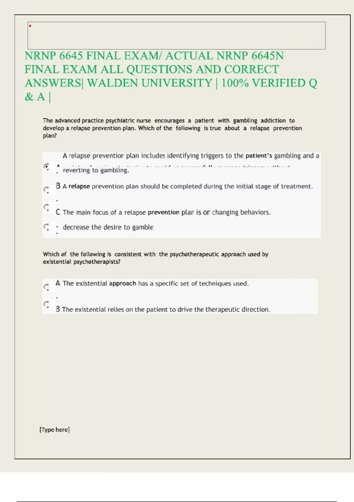 NRNP 6645 – Psychotherapy Final Exam 2025 | NRNP6645N Complete Exam Questions and Correct A+ Answers