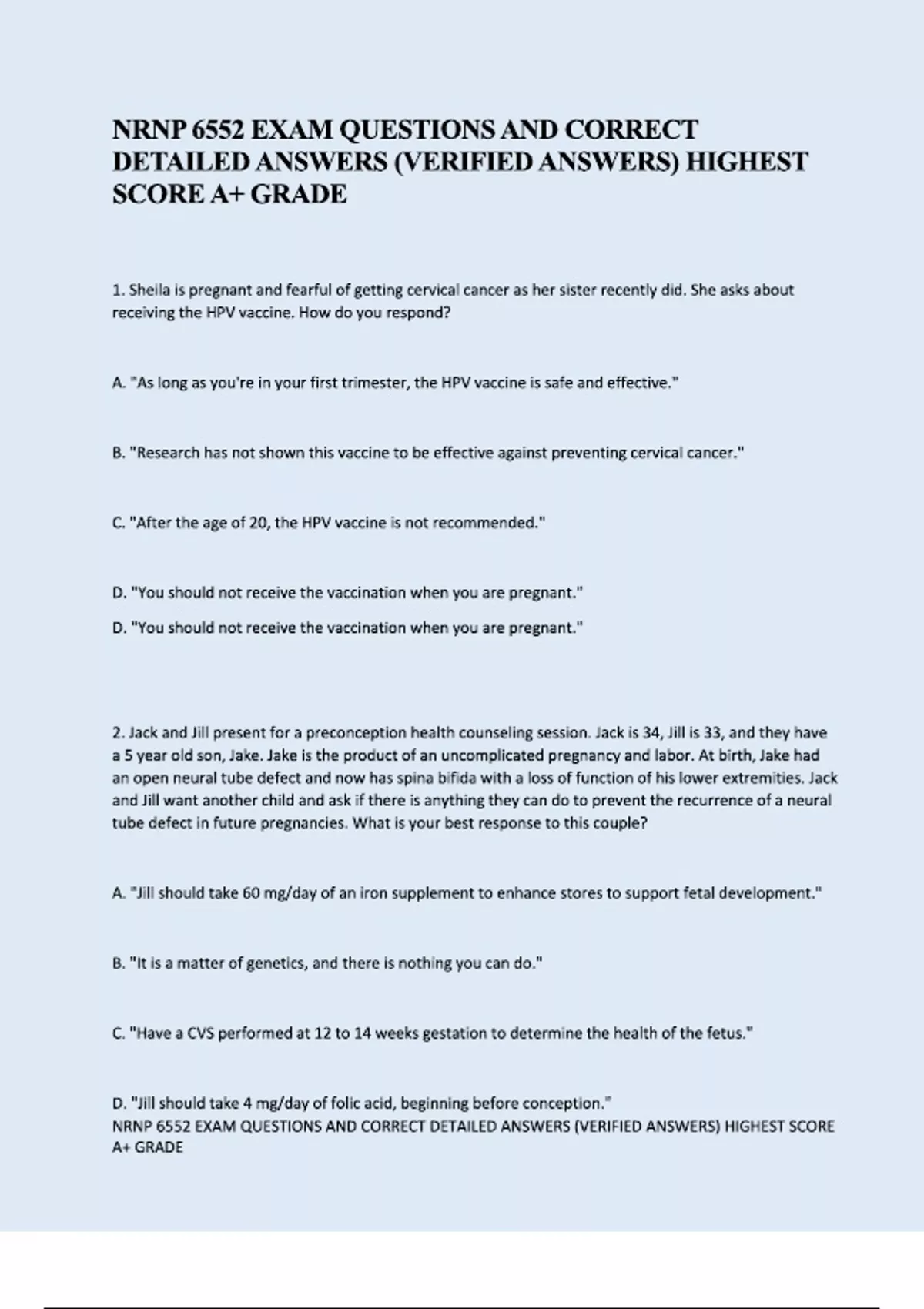 NRNP 6552 Final Exam 2025 – Primary Care of Women | Complete Exam Questions with Correct Answers (A+ Verified)