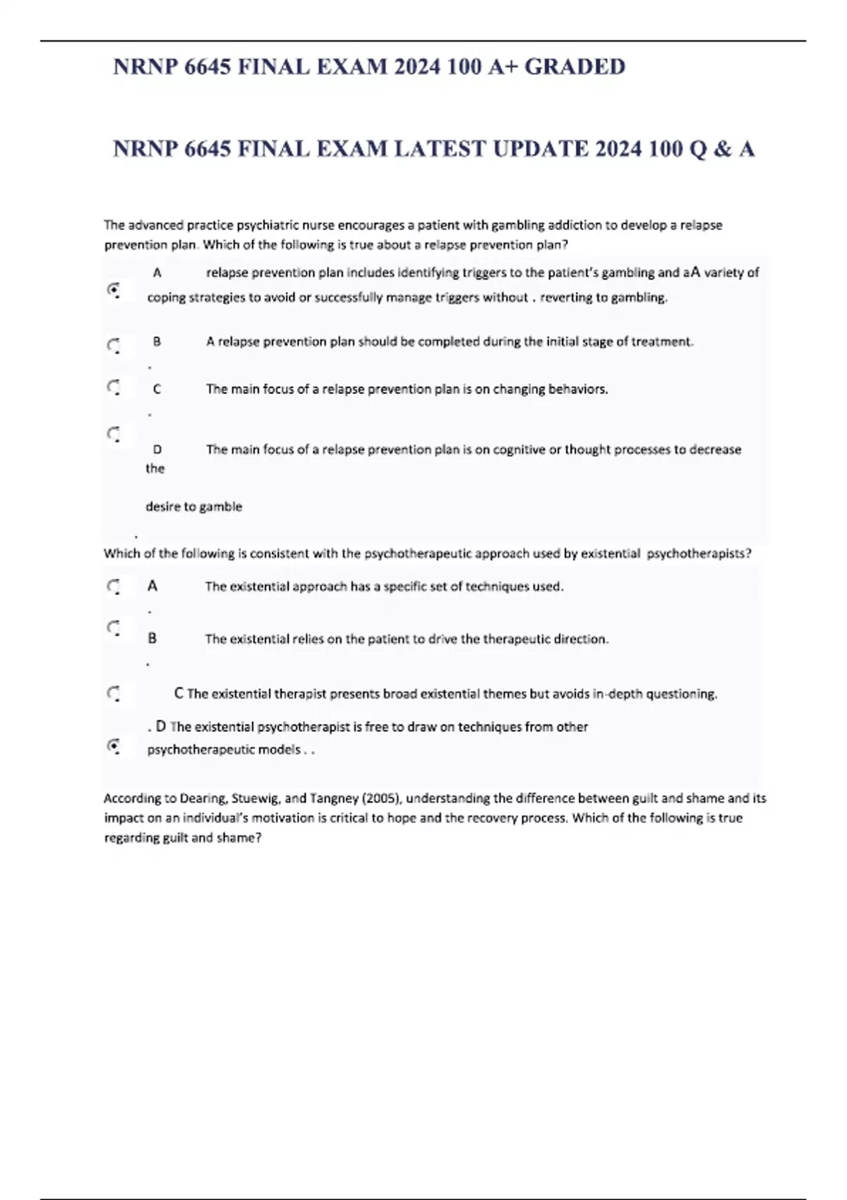 NRNP 6645 Final Exam – Psychiatric Nursing (NRNP 6645N) | 2025 Complete Exam Questions with Verified Correct Answers