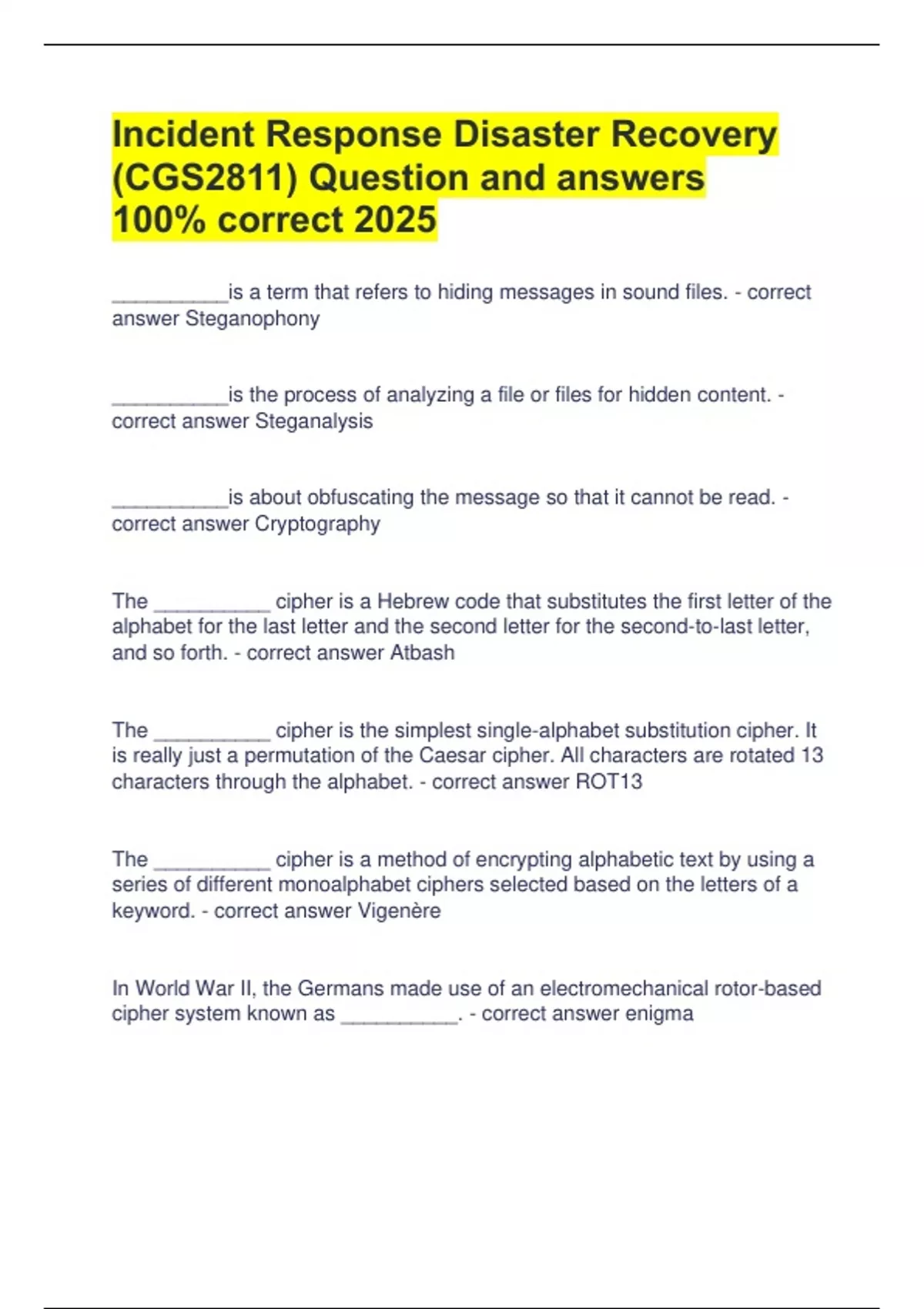 cipher system known as __________. - correct answer enigma