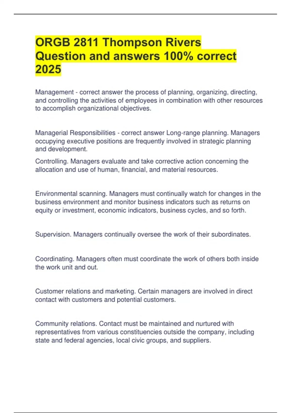 ORGB 2811 Thompson Rivers Question and answers 100% correct 2025