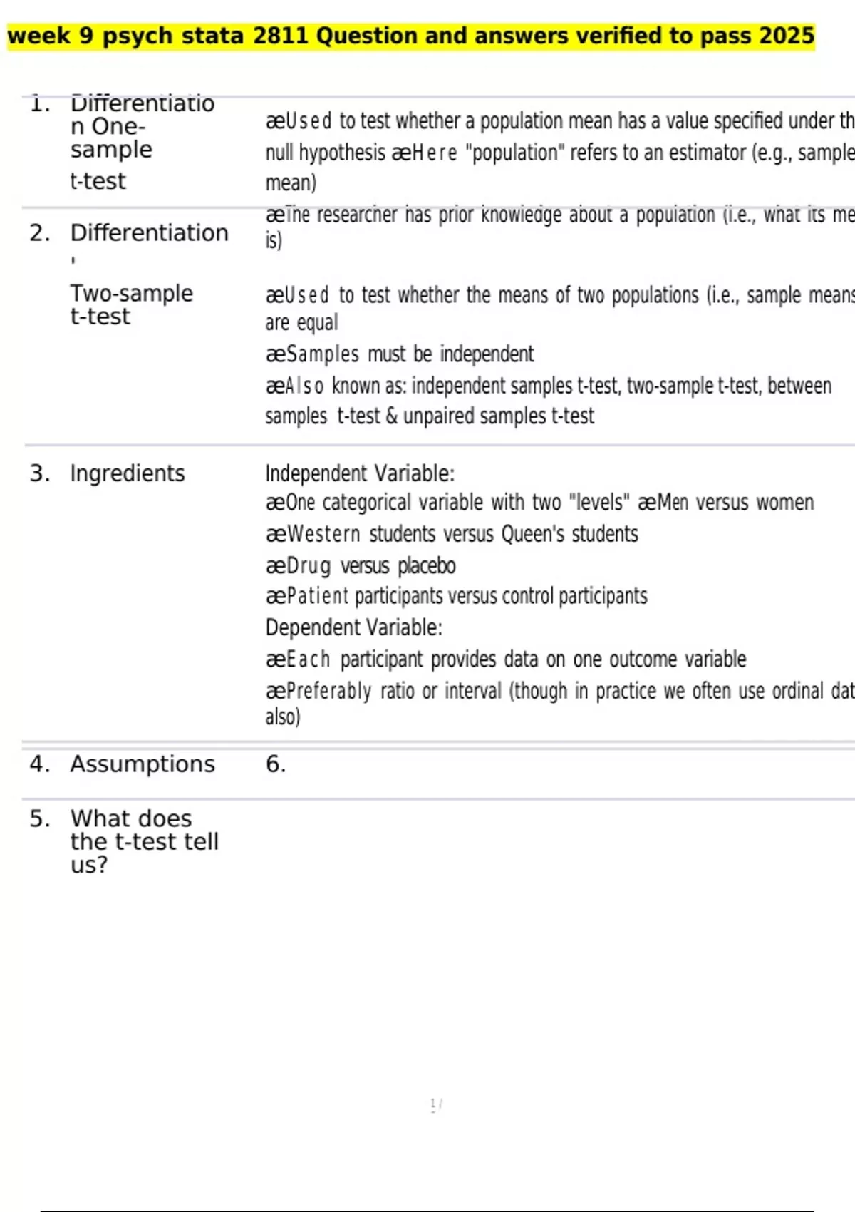 , week 9 psych stata 2811 Question and answers verified to pass 2025