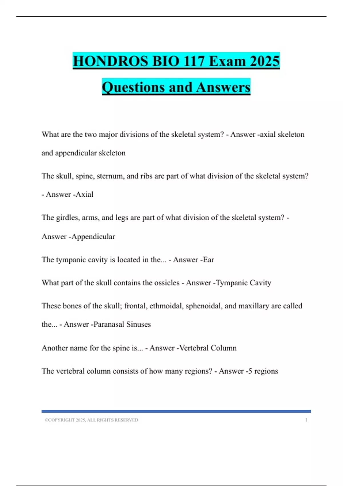 HONDROS BIO 117 Exam 2025