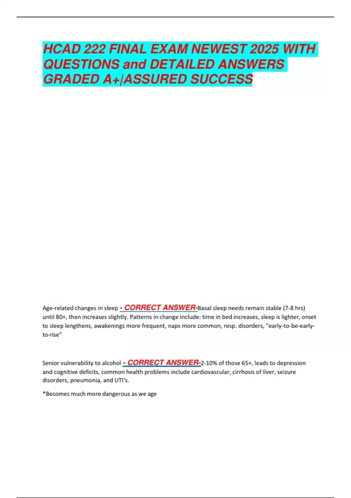 Senior vulnerability to alcohol - CORRECT ANSWER-2-10% of those 65+, leads to depression