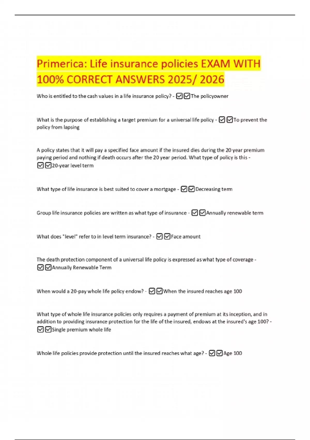 Primerica: Life insurance policies EXAM WITH 100% CORRECT ANSWERS 2025/ 2026