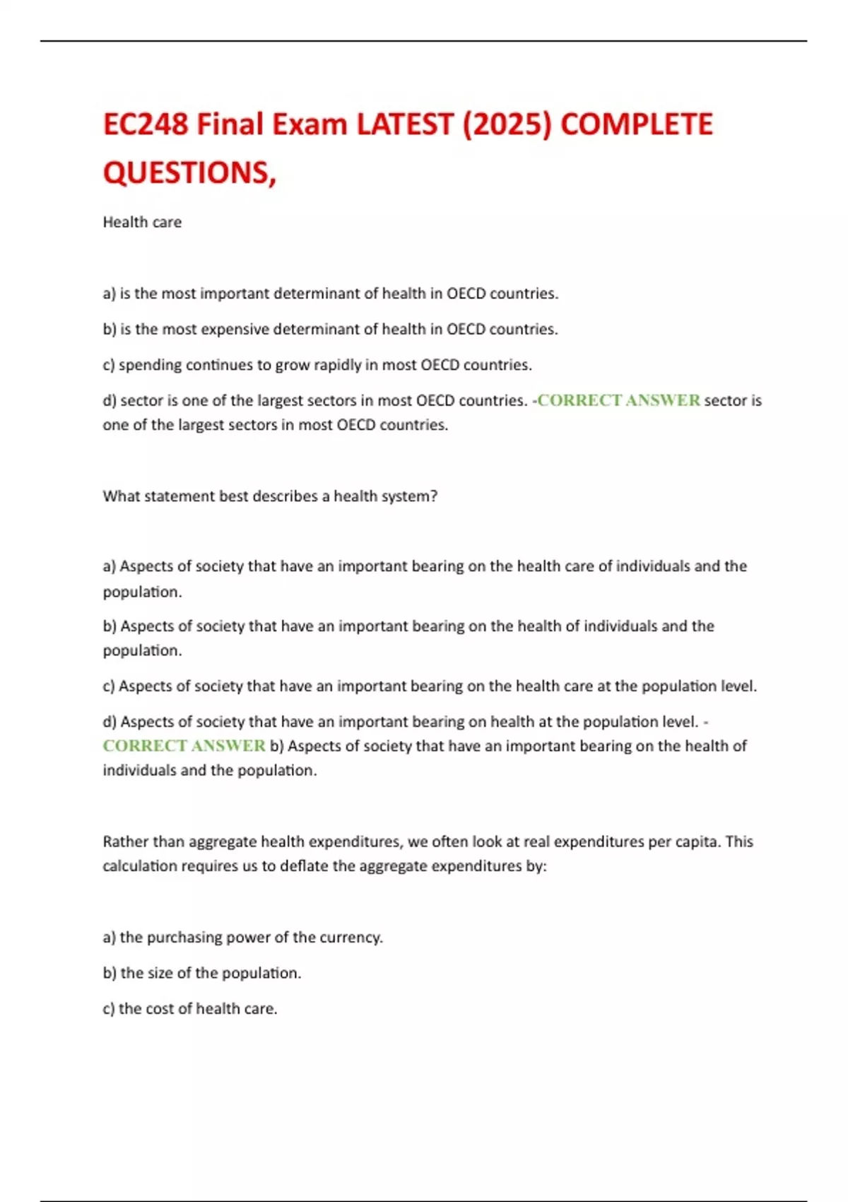CORRECT ANSWER b) Aspects of society that have an important bearing on the health of