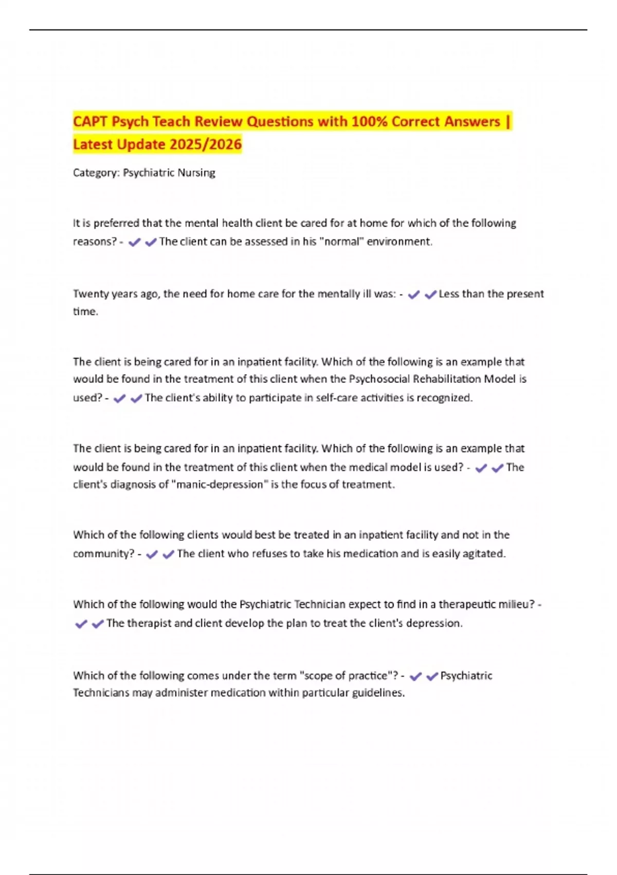 CAPT Psych Teach Review Questions with 100% Correct Answers | Latest Update 2025/2026