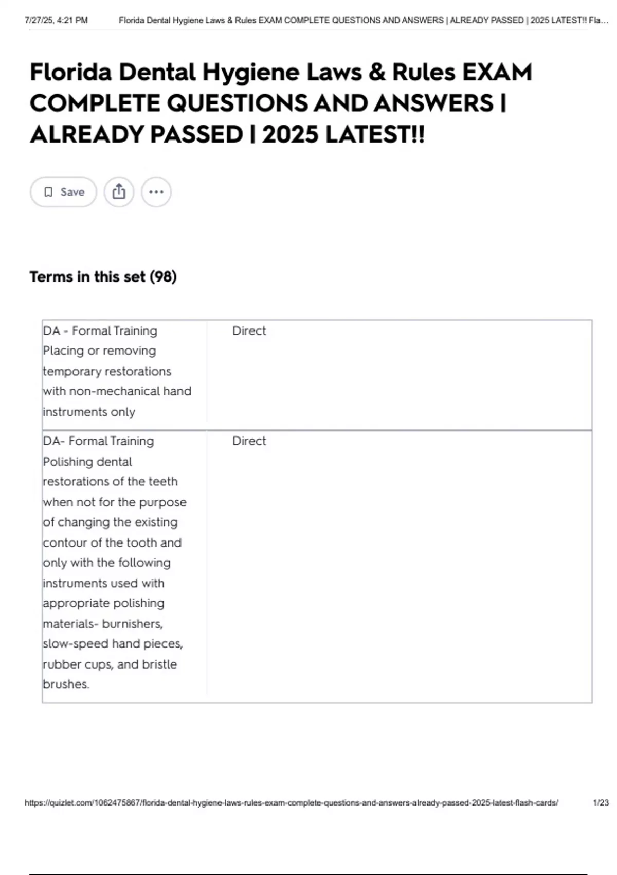 https://quizlet.com/1062475867/florida-dental-hygiene-laws-rules-exam-complete-questions-and-answers-already-passed-2025-latest-flash-cards/ 1/23