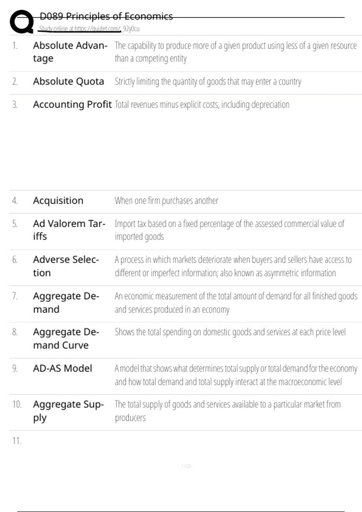 1. Absolute Advan- The capability to produce more of a given product using less of a given resource