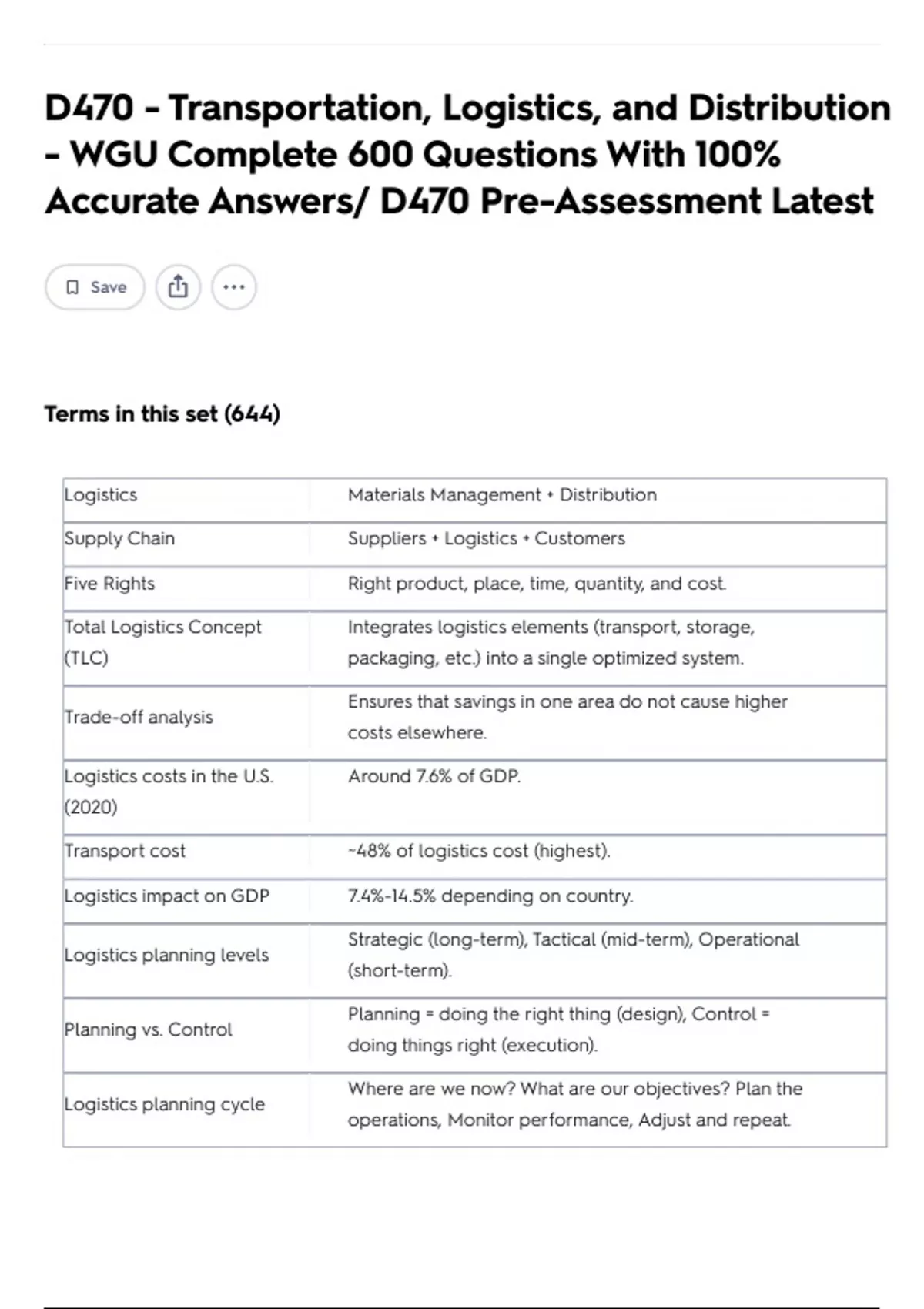 Total Logistics Concept Integrates logistics elements (transport, storage,