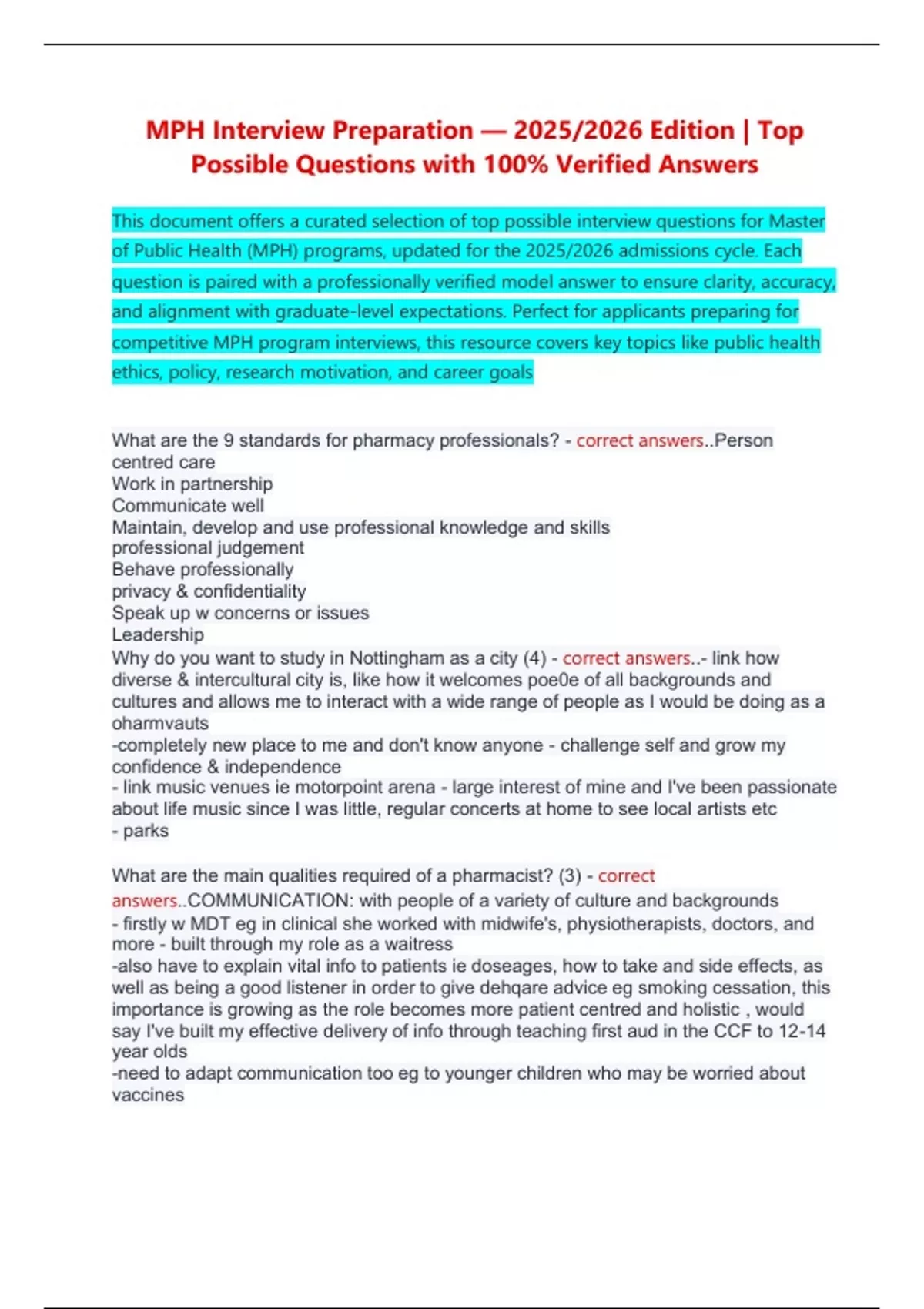 MPH Interview Preparation — 2025/2026 Edition | Top Possible Questions with 100% Verified Answers This document offers a curated selection of top possible interview questions for Master of Public Health (MPH) programs, updated for the 2025/2026 admissi