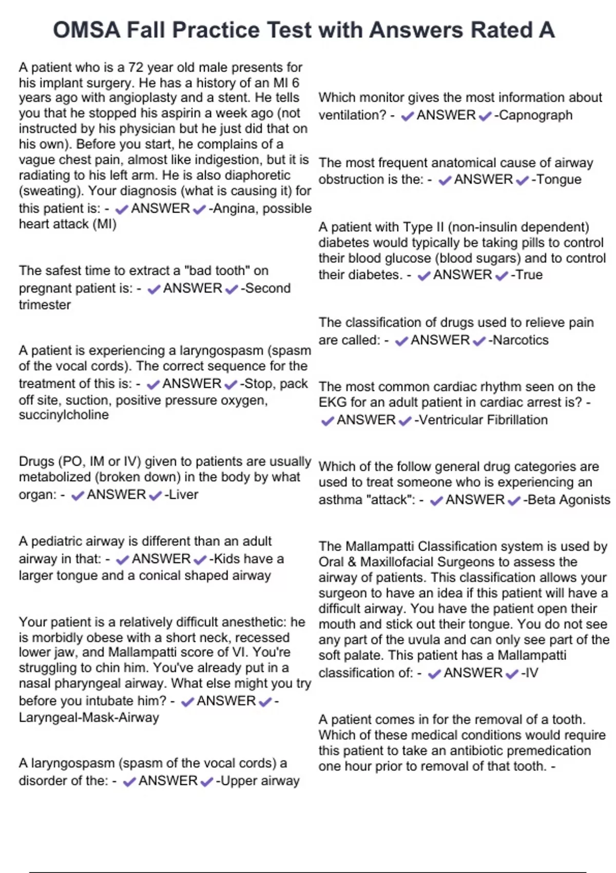 , OMSA Fall Practice Test with Answers Rated A