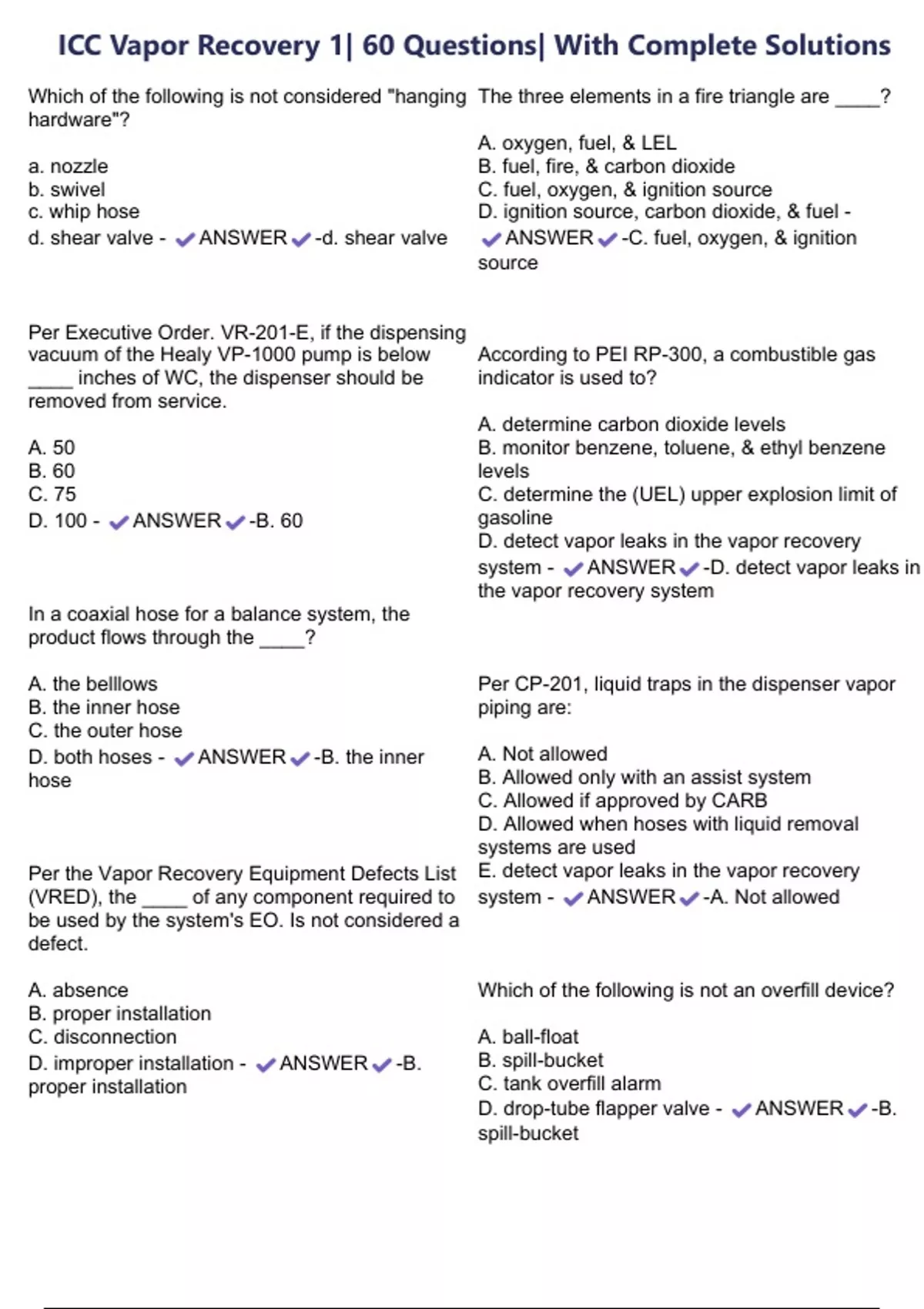, ICC Vapor Recovery 1| 60 Questions| With Complete Solutions